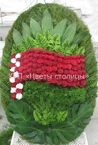 В разнообразных венках из живых цветов может быть использовано 150-200 цветов. Живые венки, в которых происходит сочетание красного и черного цветов, имеют одновременно торжественный и траурный вид.